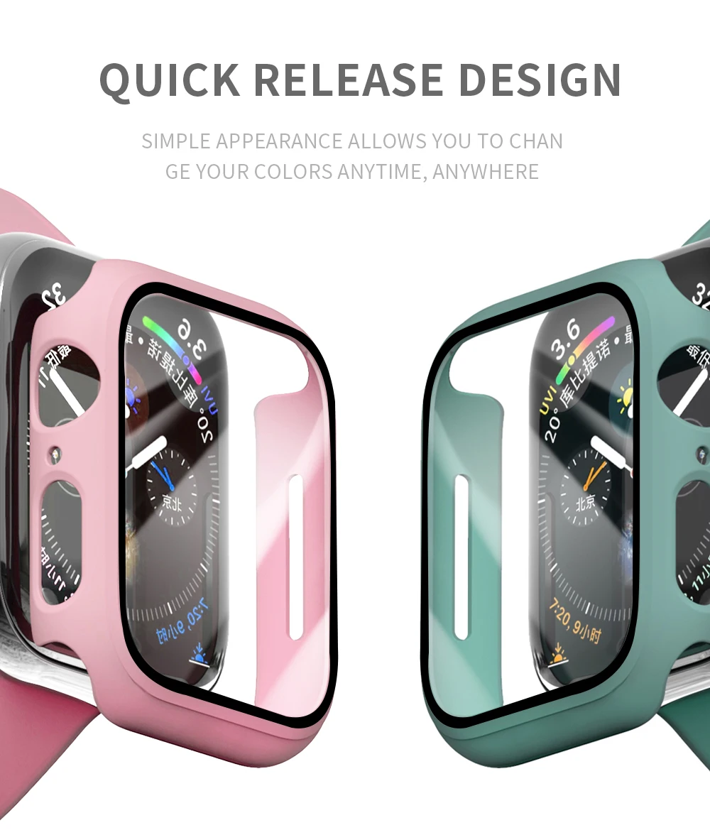 | Glass+case for Apple Watch series 6 SE 5 4 3 2 1 44MM 42MMM 40MM 38MM for iwatch screen protective film+cover bumper accessories |