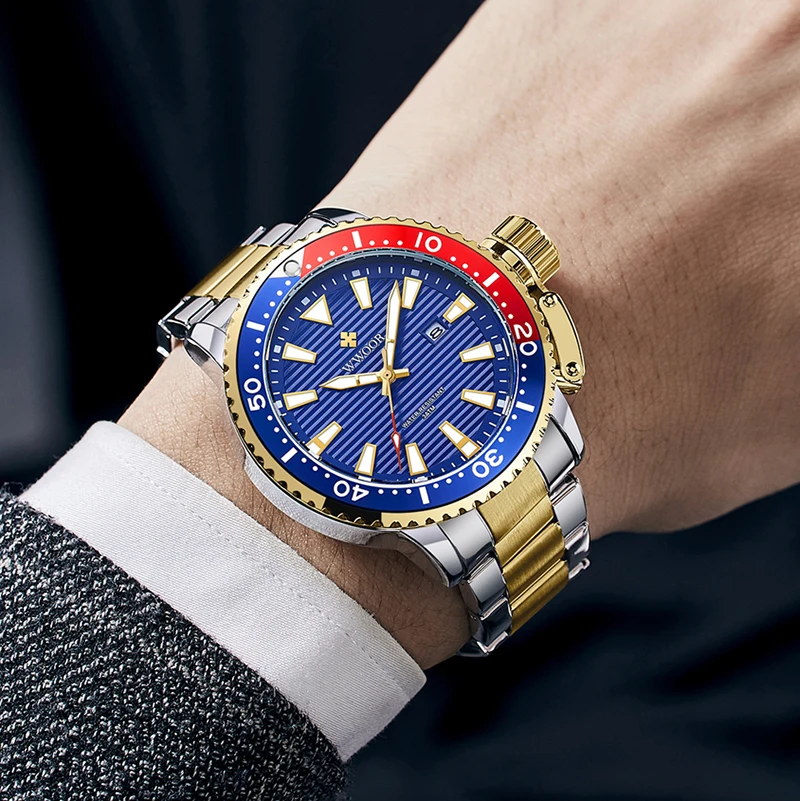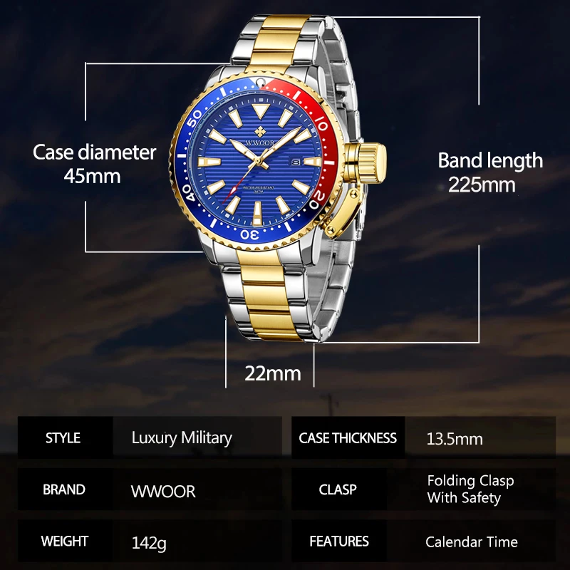 | WWOOR New Luxury Military Gold Watches Mens 2020 Sports Dive Quartz Wrist Watch Full Steel Luminous Waterproof Relogio Masculino |