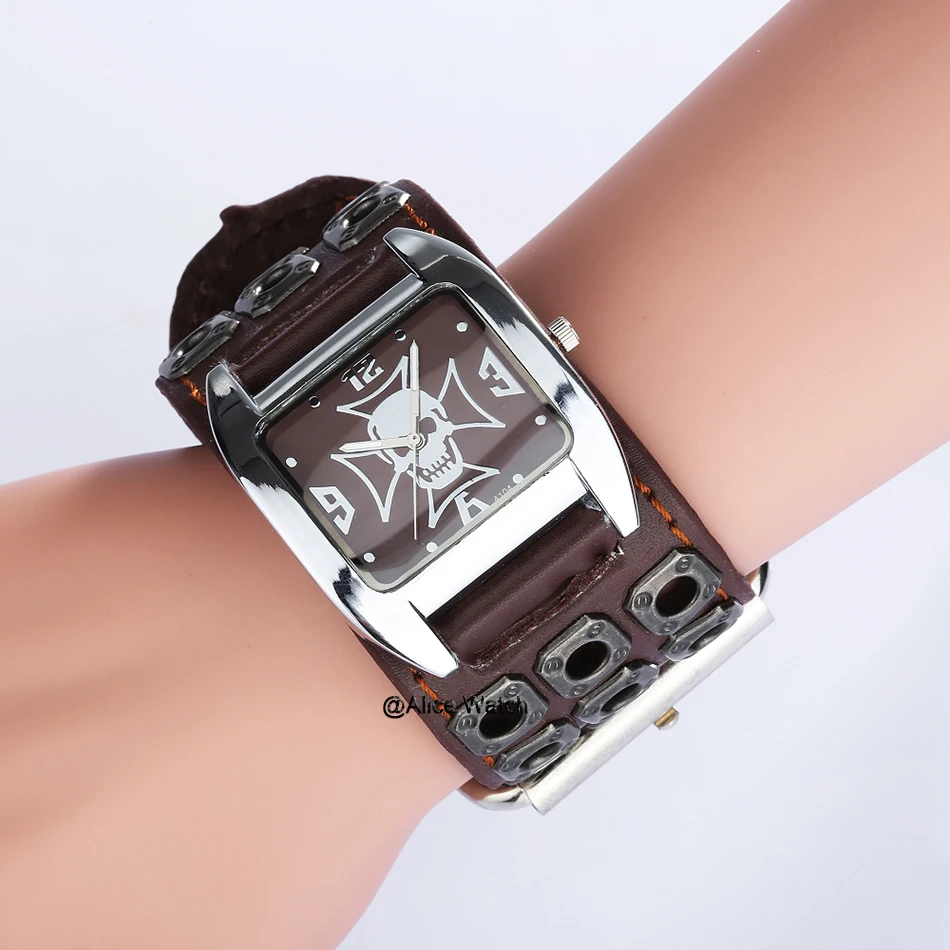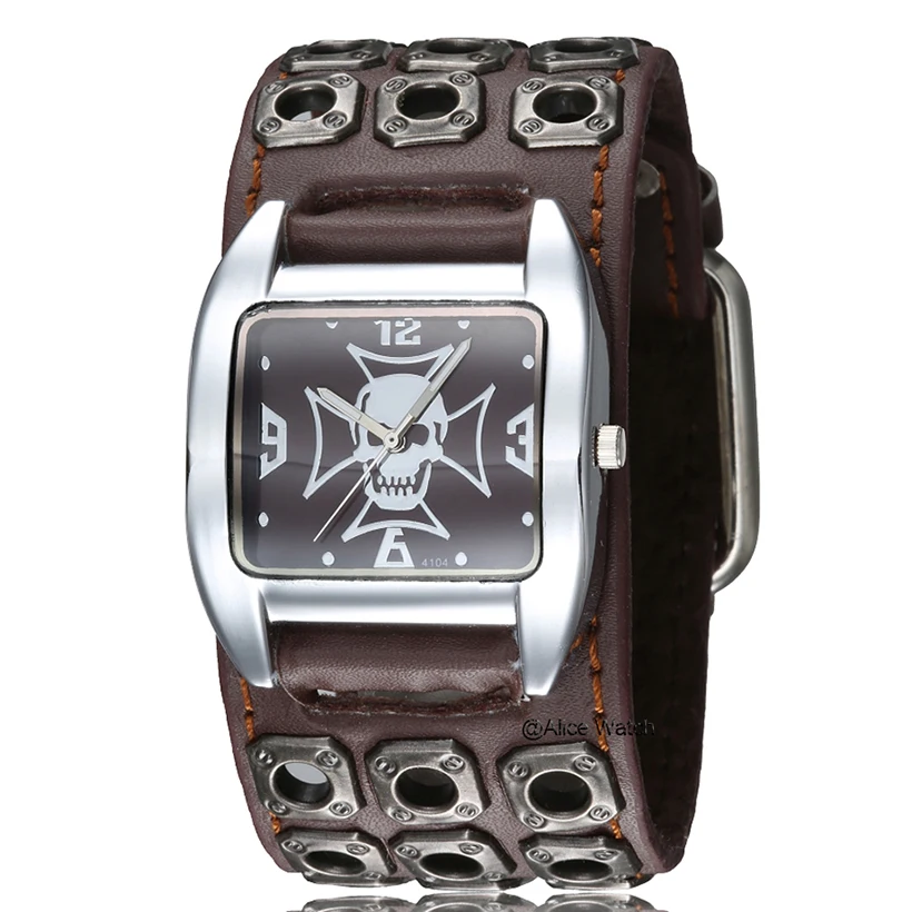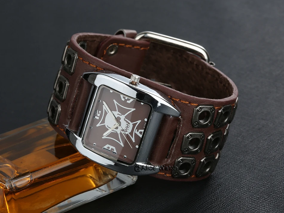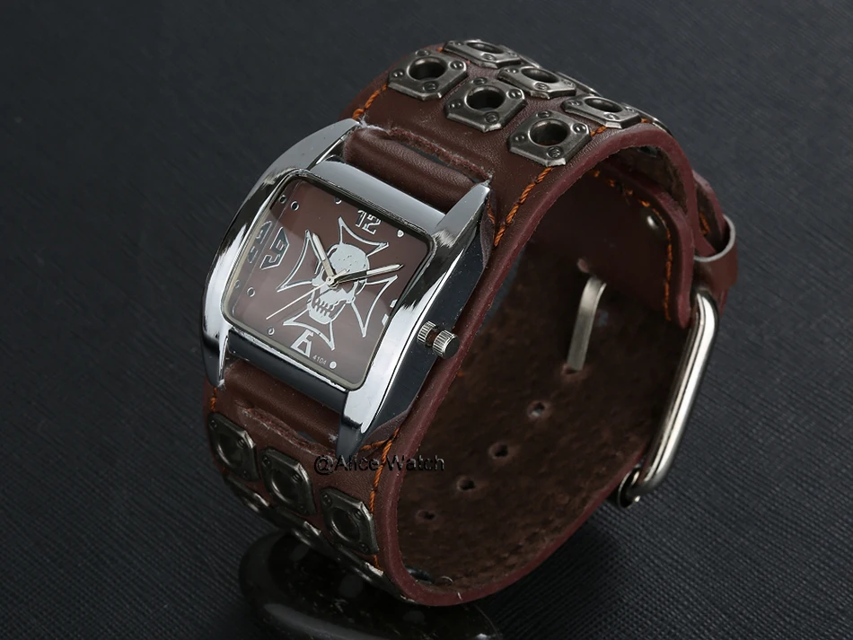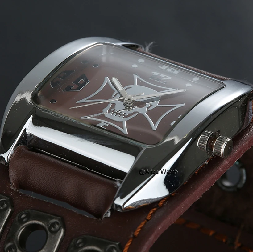 | Punk Gothic Style Rock mens Wrist watch Leather Strap Skull Quartz Sports Mens Bracelet Watches Gifts Relogio Masculino |