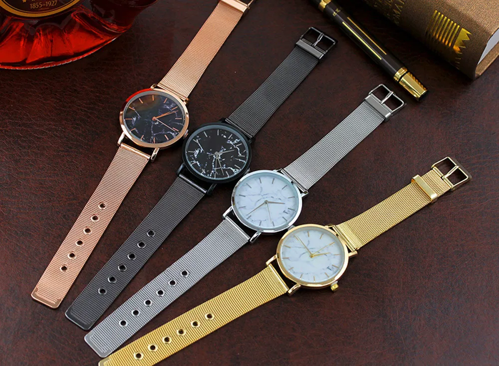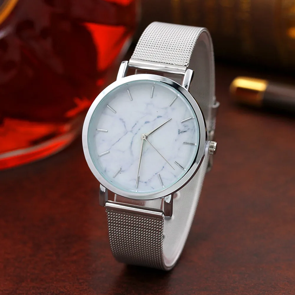 | Fashion Women Watch Marble Surface Stainless Steel Simple Mesh Ladies Watch Band Wrist Watch Female Clock montres femmes |