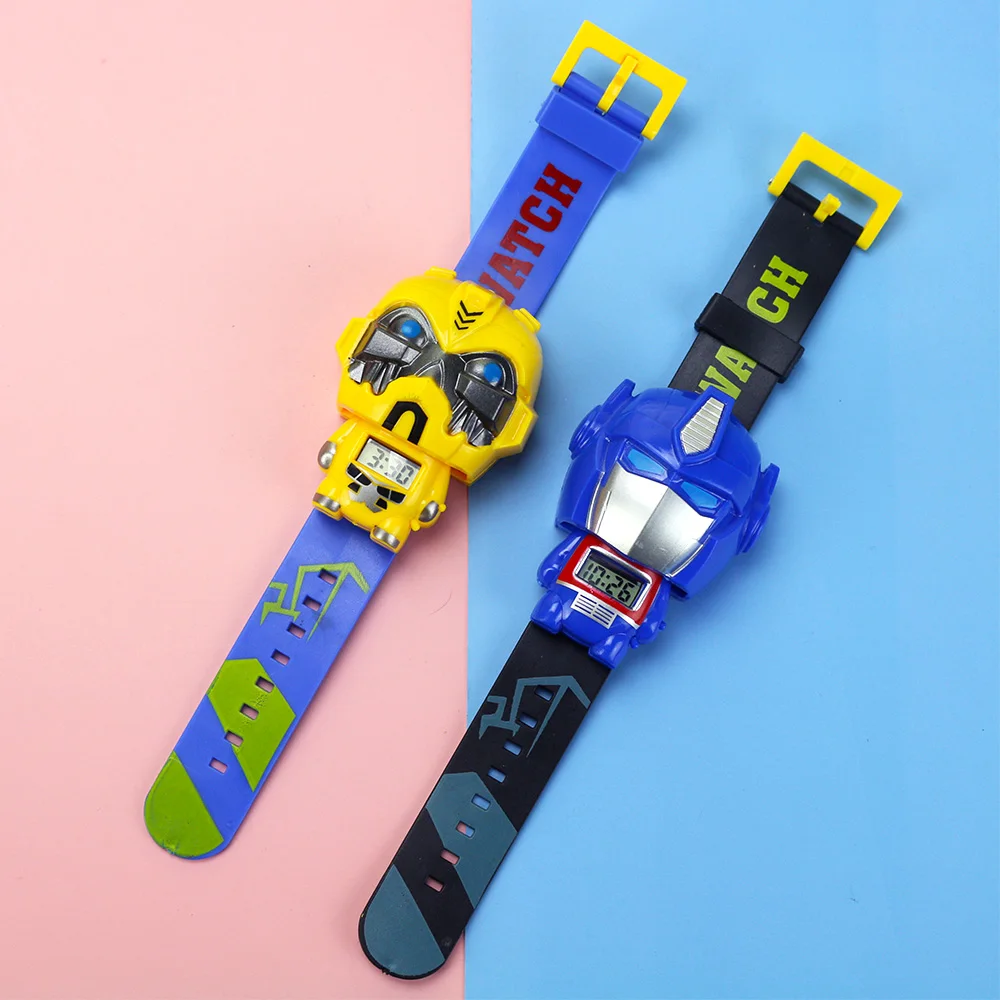 | New Electronic Rubber Type Children's Watch Telescopic Deformation Super Hero Kids Watches For Boys Girl Student Wristwatch |