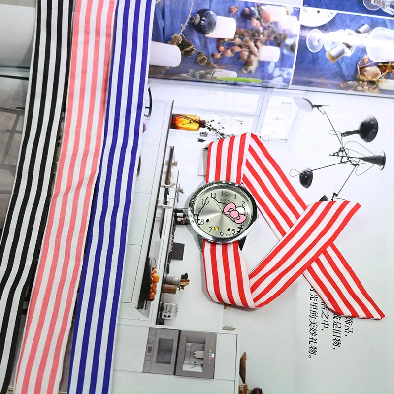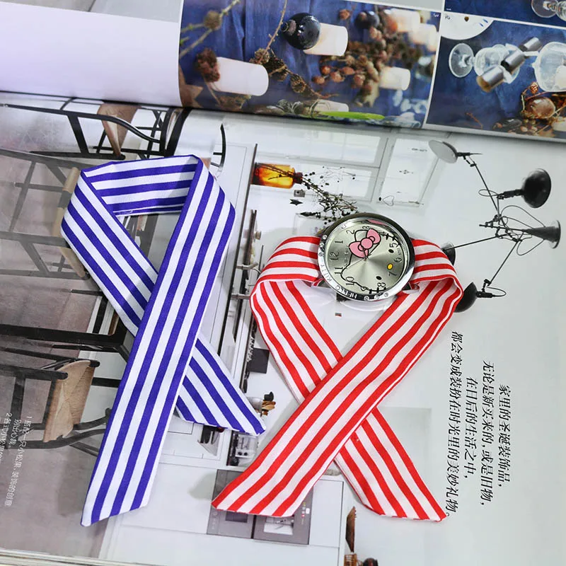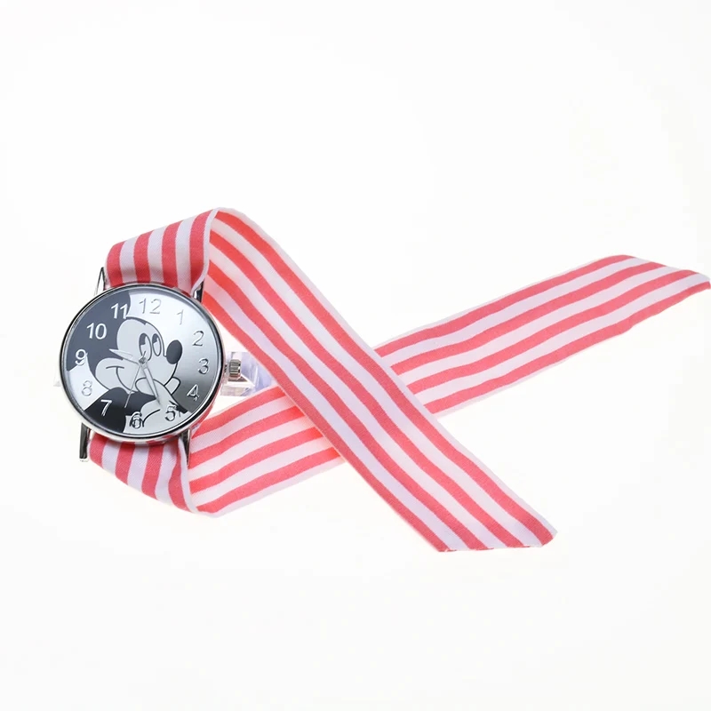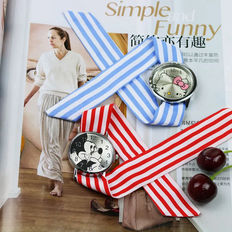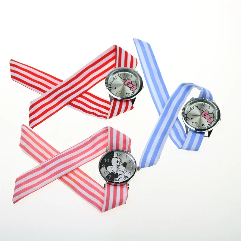 | Ribbon Children Watches Princess Kids Clock Fashion Stripe Floral Cloth Women Watches Student Girls Wristwatch Big Small Size |