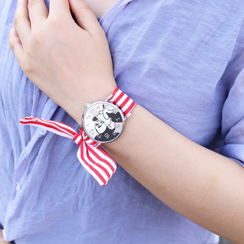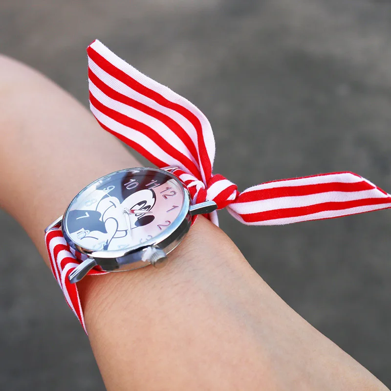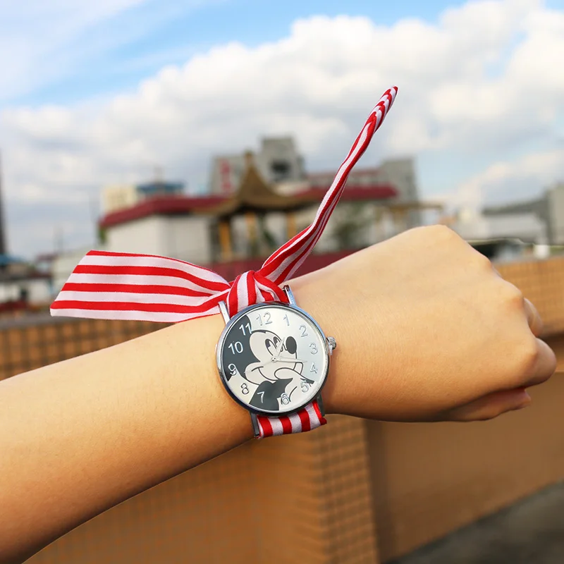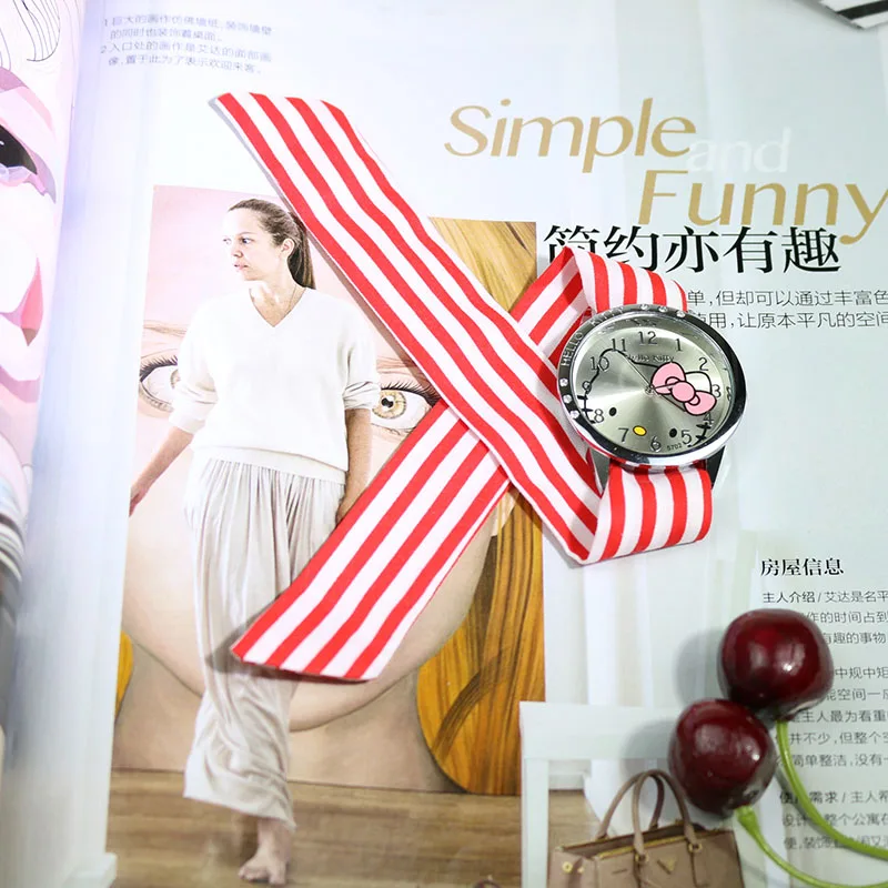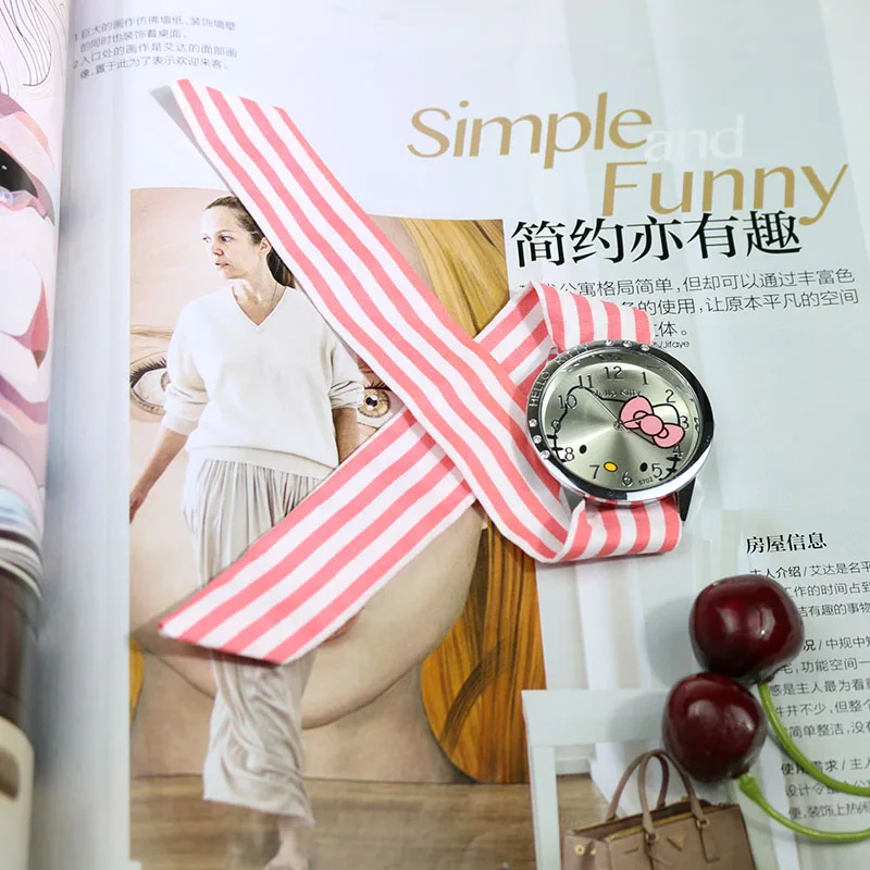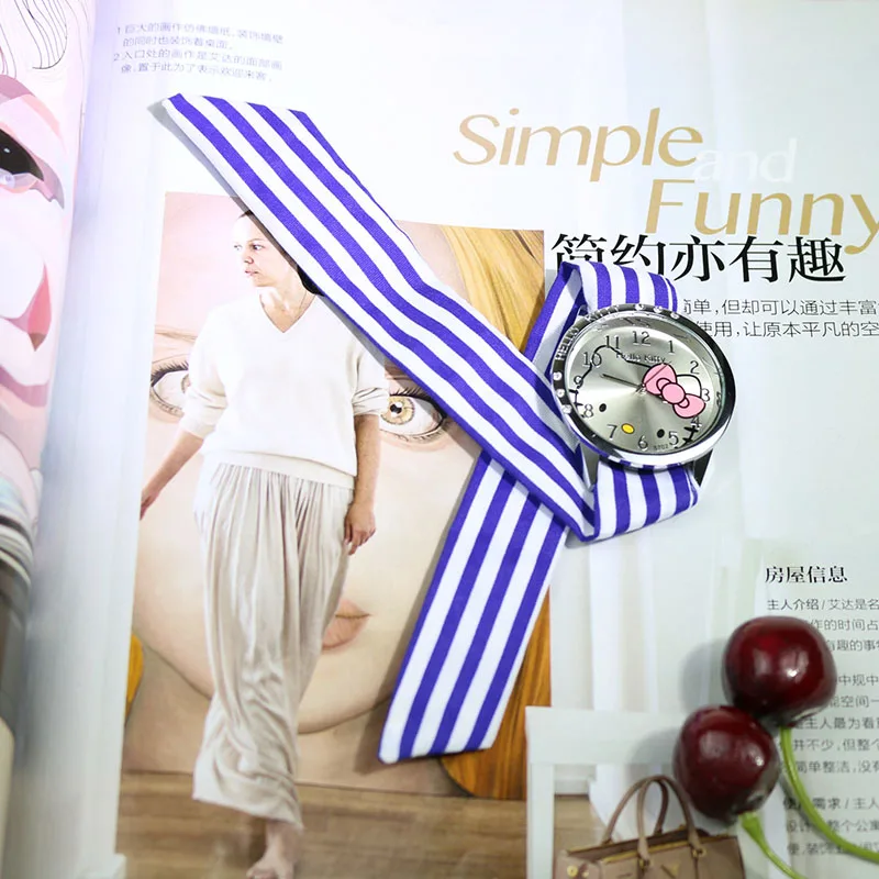 | Ribbon Children Watches Princess Kids Clock Fashion Stripe Floral Cloth Women Watches Student Girls Wristwatch Big Small Size |