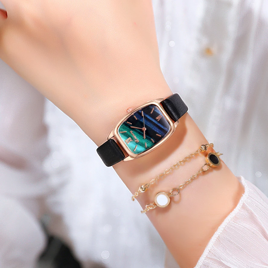 | Fashion Women's Small Leather Band Analog Green Imitation Marble Dial Quartz Clock Dress Ladies Watches For Women Reloj Mujer |