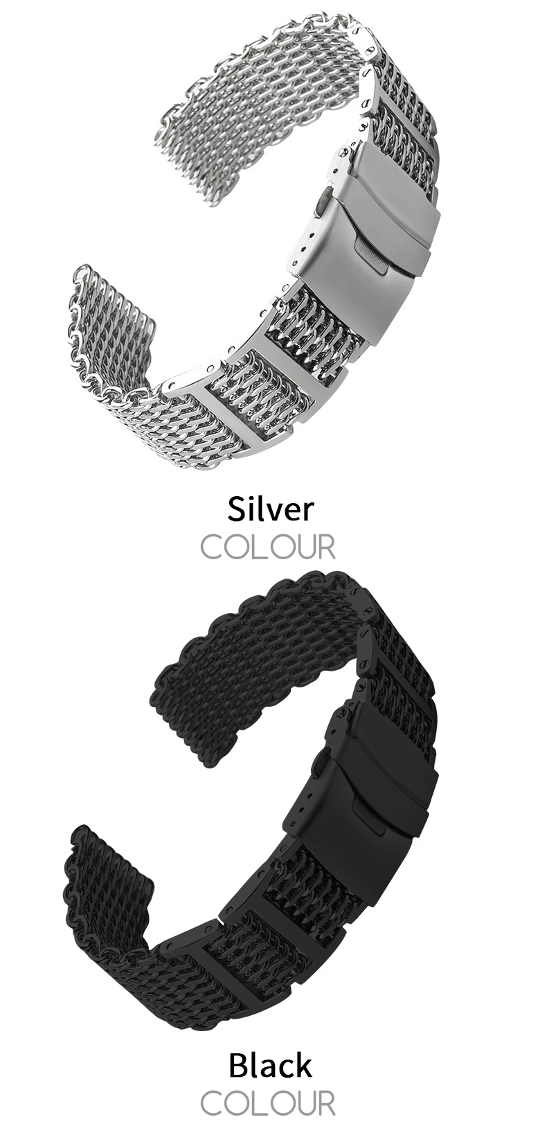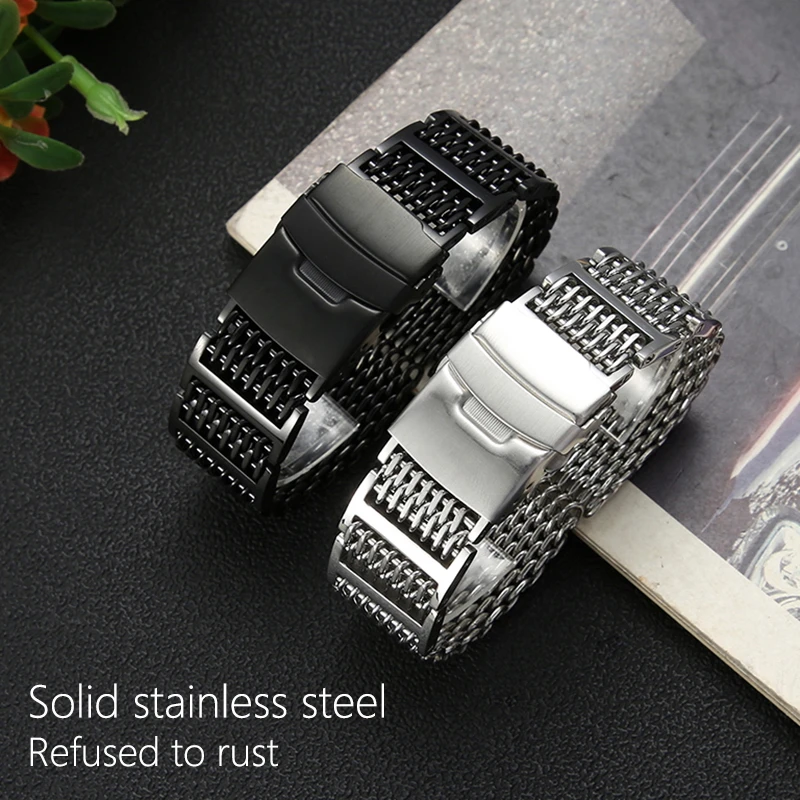 | 20mm 22mm 24mm H-Link Quality Milanese Shark Mesh Micro Adjust Double Insurance Buckle for OMEGA Watch Band AVIATOR Seiko VOSTOK |
