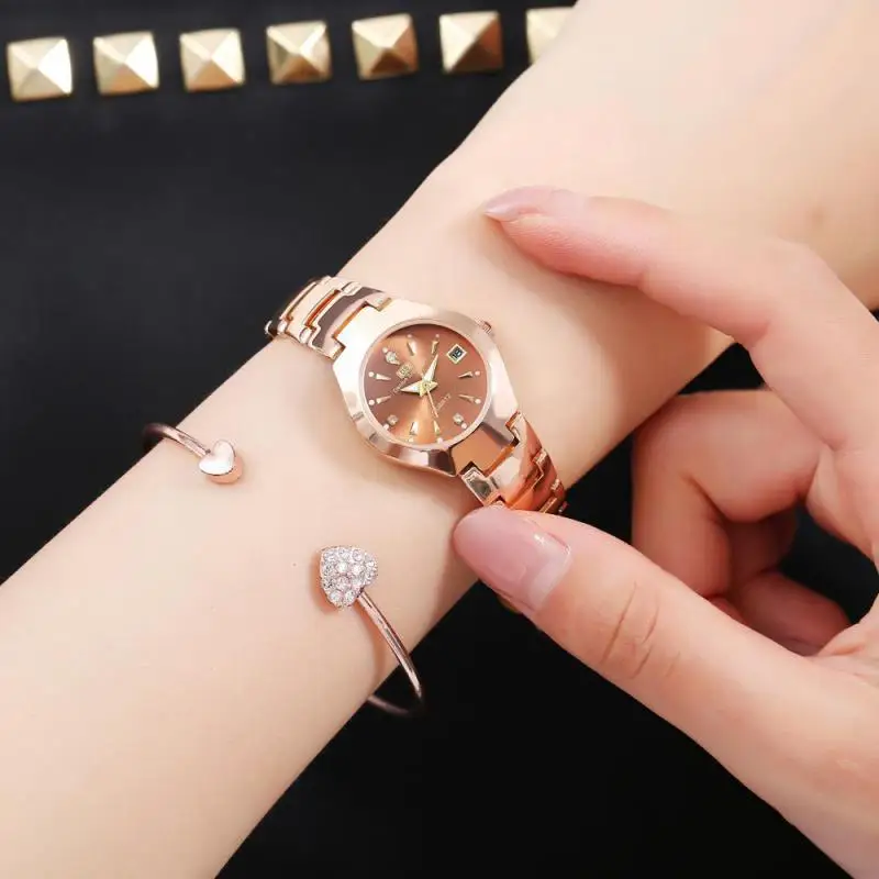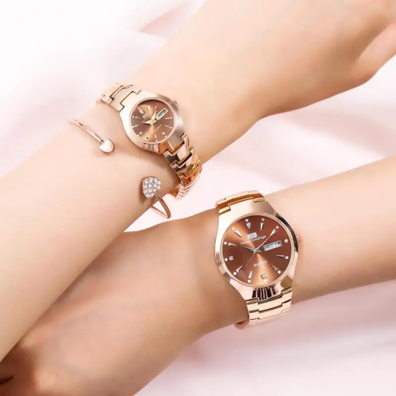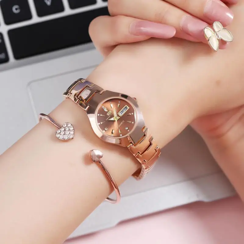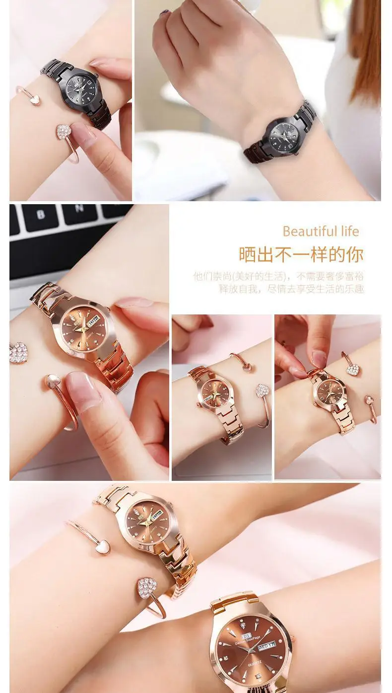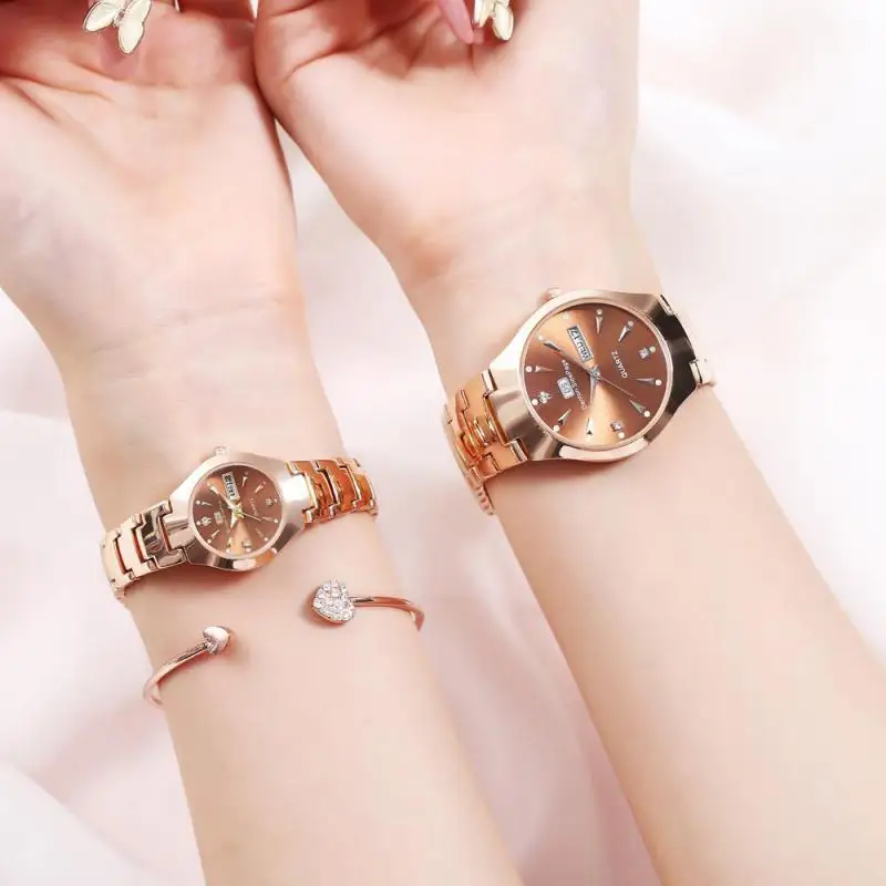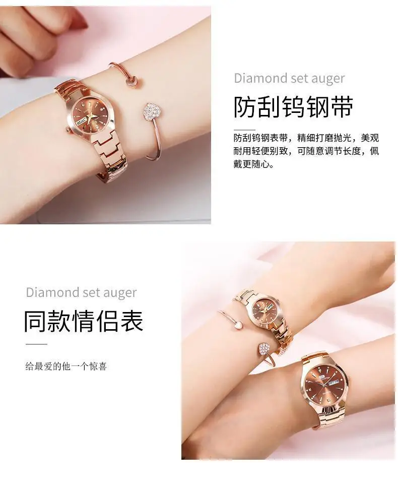 New 2020 Women watch Waterproof Stainless steel Quartz Wristwatch Couple watch Rhinestone calendar Luxury Gift for Women/Men
