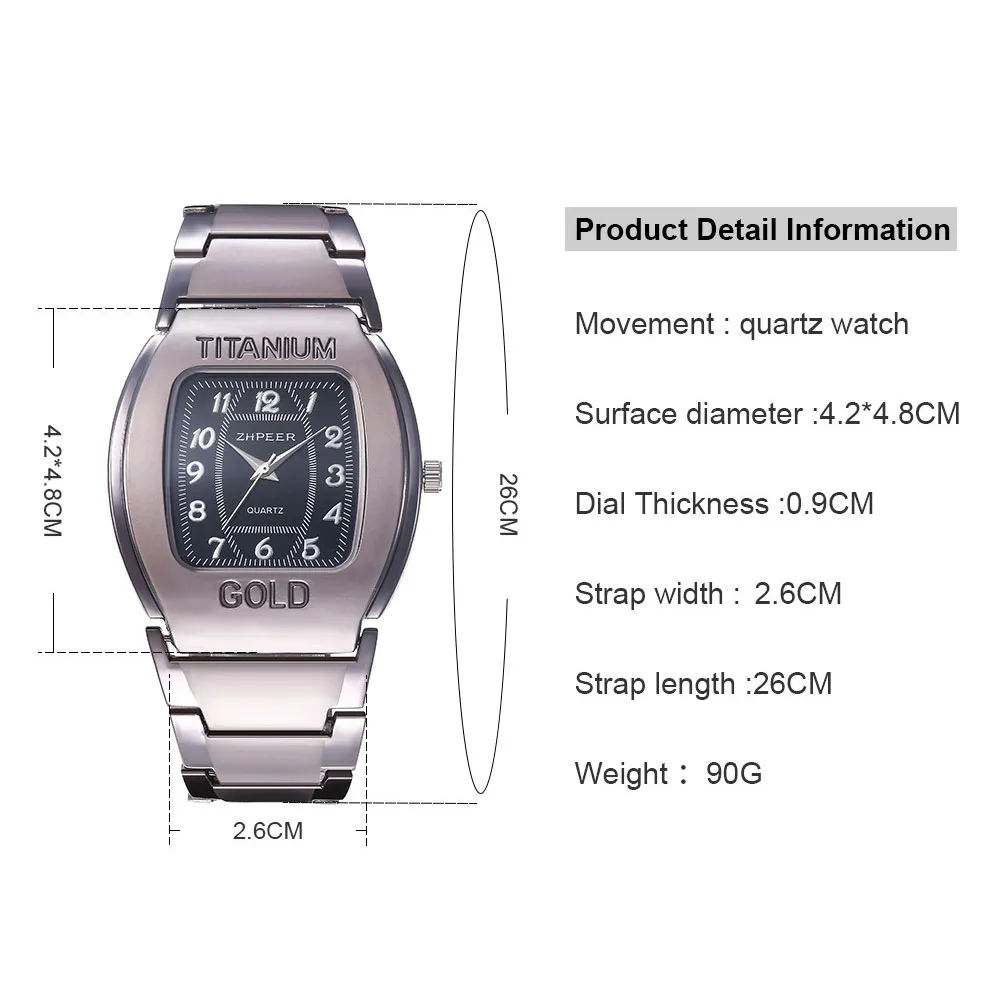 Men's large dial, wine barrel square titanium gold business leisure Quartz Wrist Watch, men's Watch