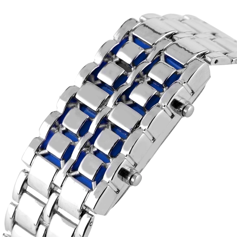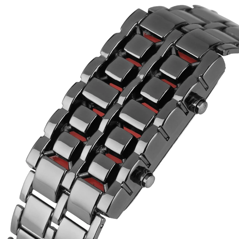| Mens Watch Full Metal Digital Lava Wrist Watch Iron Metal Red LED Blue LED Samurai for Men Boy Sports Dress Watches Reloj Hombre |