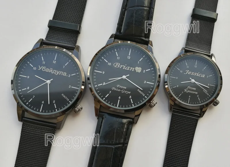 Please leave name you want to engrave via note when place the order or leave message via "Contact Seller" after payment. Any name, text, etc can be engraved. Seller suggest max 15 letters, the less the better to make engraving more visible.Seller can do language such as Spanish, Russian etc. (with diacritic/accent also OK). Men's watch diameter=42mm / Lady's watch diameter=32mm