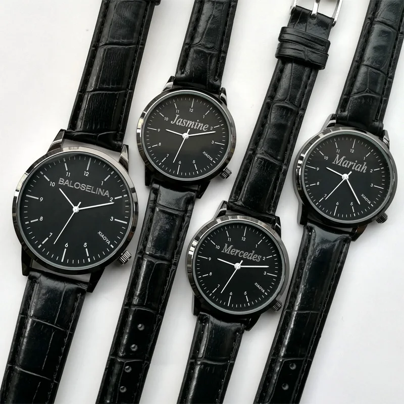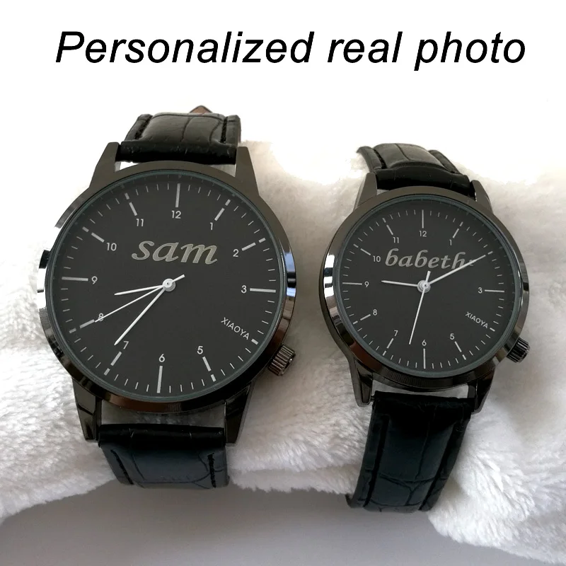 | Personalized Men's Watch Customized Engraved with Your Name on Watch Face Men Lady Wristwatch Unisex Leather Band Wrist Watch |