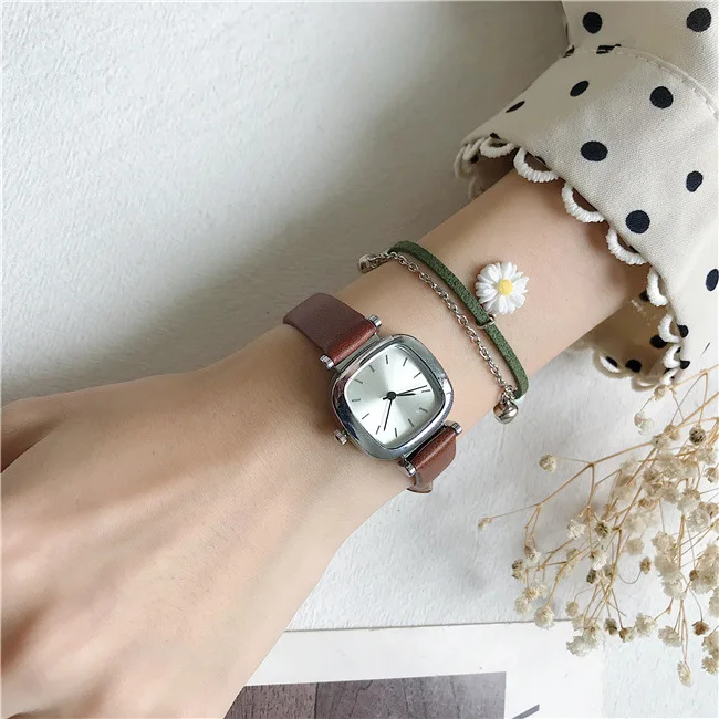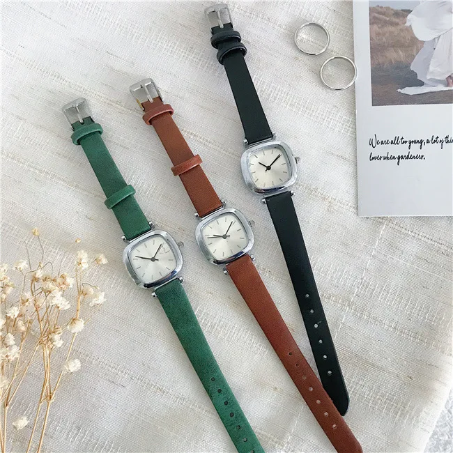 | Retro Square Women Watches Fashion Drop Shipping Quartz Watch Ladies Vintage Leather Wristwatches Simple Small Woman Clock |