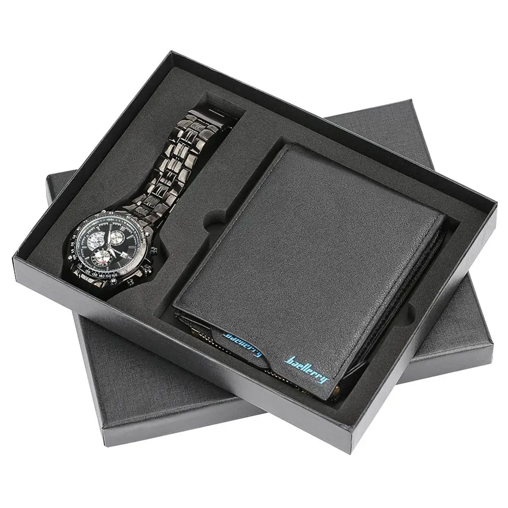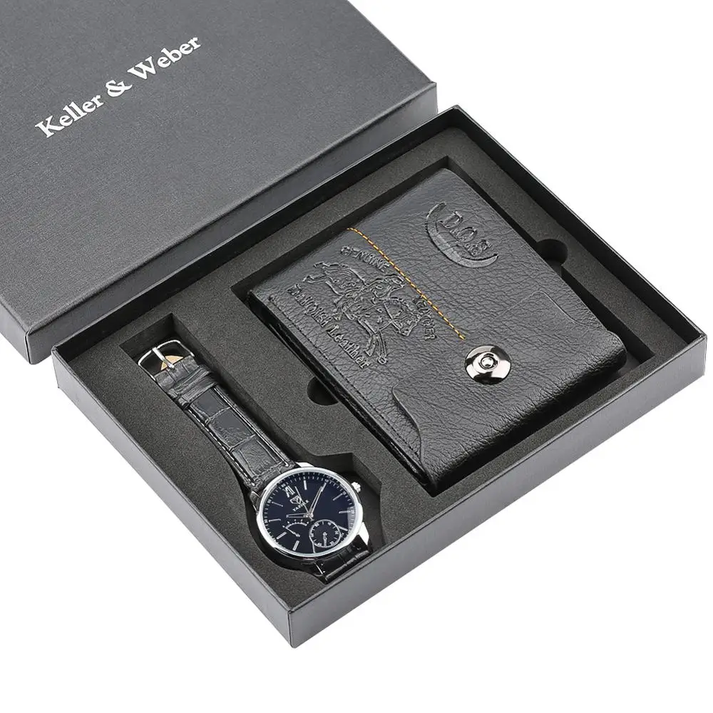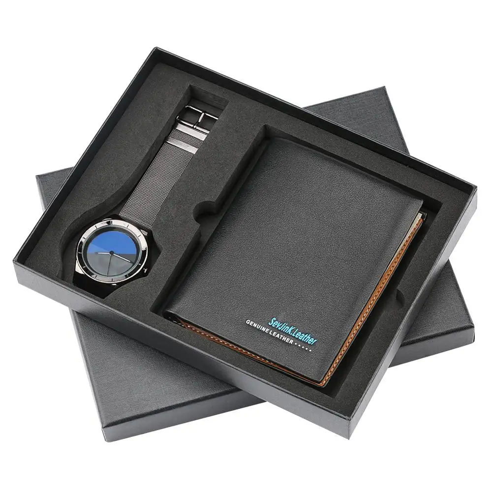 1 x Box Luxury Minimalist Quartz Wrist Watch Business Style Wallet Watches Men for Dad Husband Gift Set Love Gifts Relogio Masculino