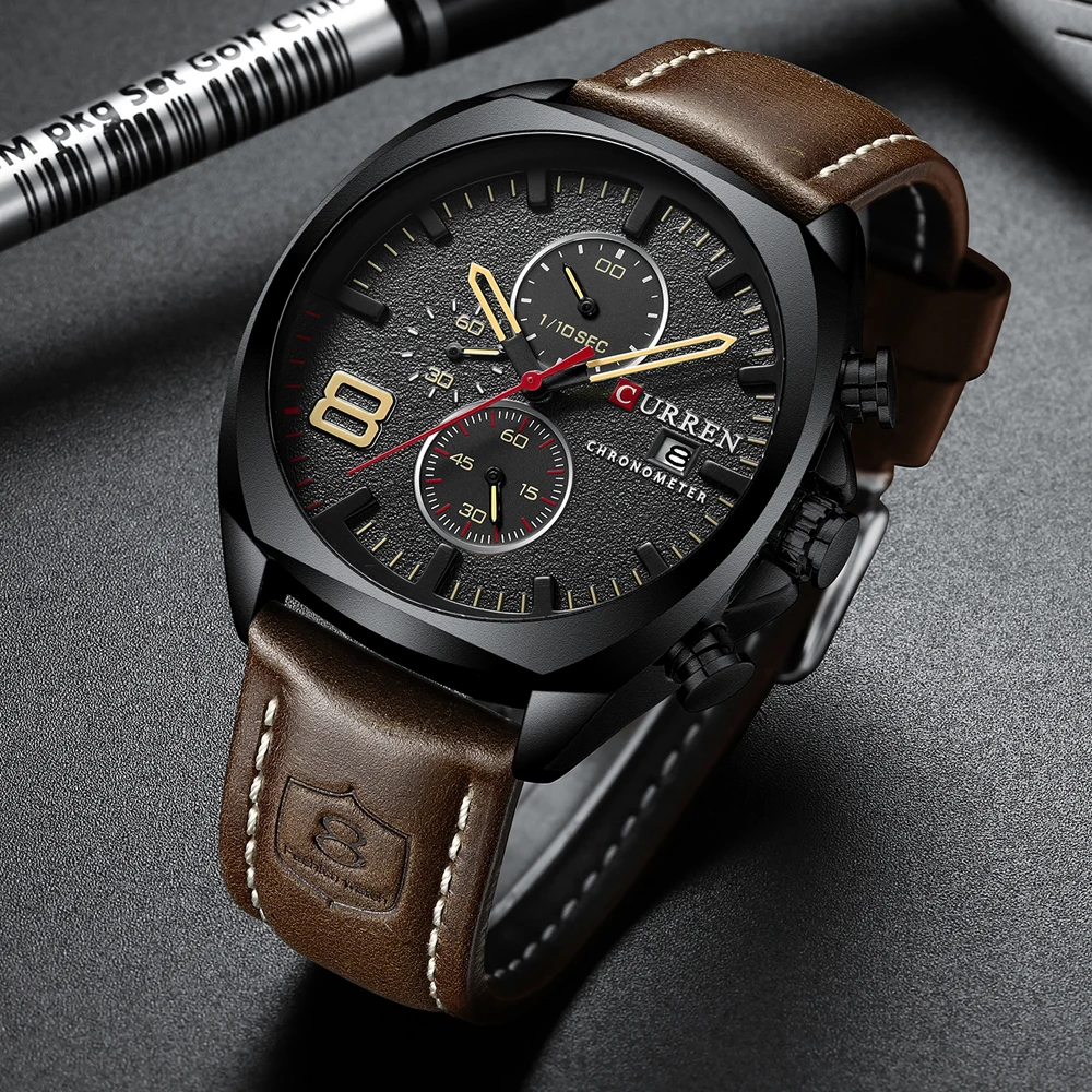 CURREN Watch for Men Top Brand Watches Leather Strap Wristwatch Fashion Chronograph Sport Quartz Clock Male Gift