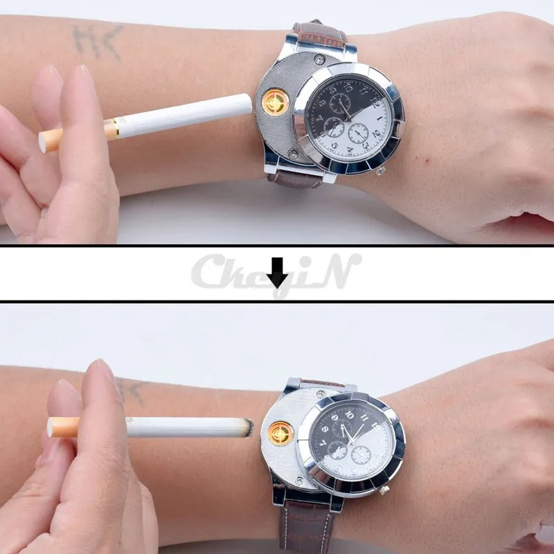 1PCS USB Charging Lighter watches Men's Casual Quartz Watch Arc Windproof Flameless Cigarette Watch Lighter Wristwatches JH338US $ 24.75 /