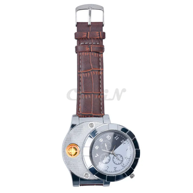 Fashion Rechargeable USB Lighter Watches Electronic Men's Casual Quartz Wristwatches Windproof Flameless Cigarette Lighter G-W1203 SKU:G-W1203