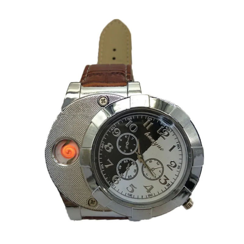 new Lighter Watches for Men casual sports Flameless Cigarette Lighter Quartz Watch leather strap USB charging clock F780US $ 20.23 /