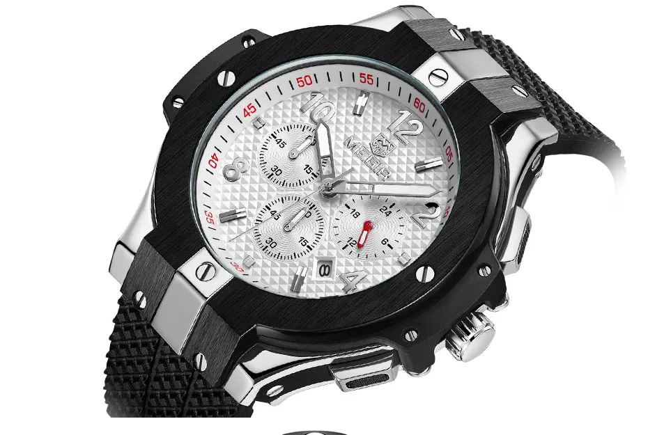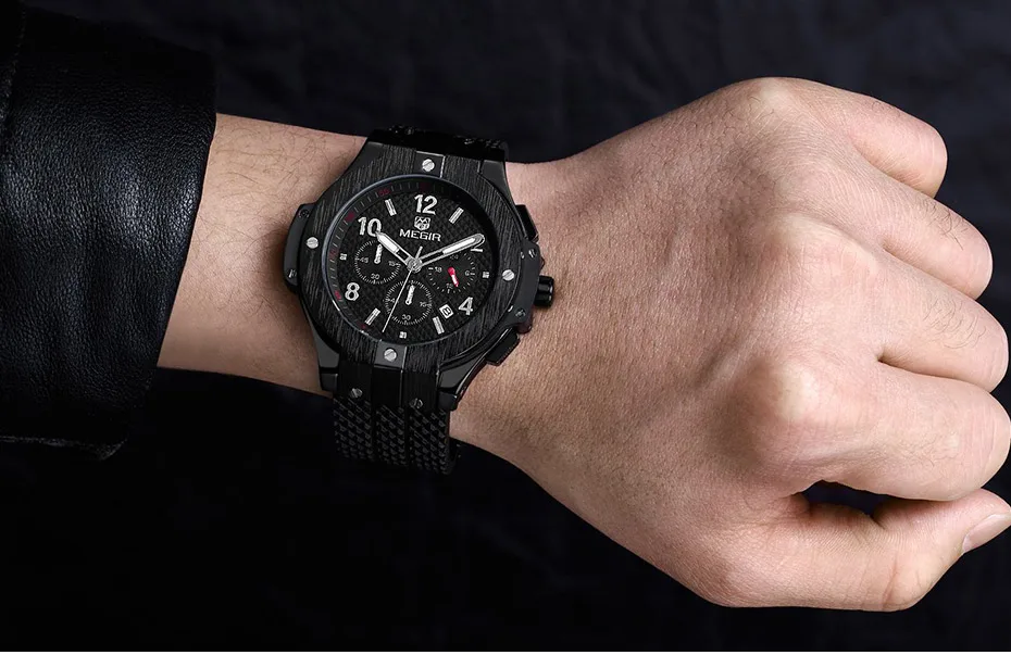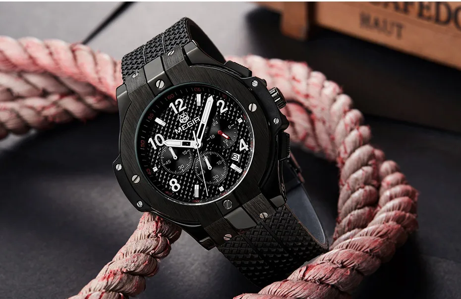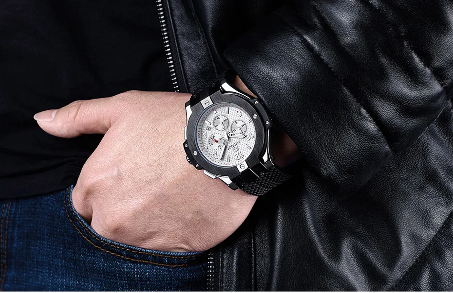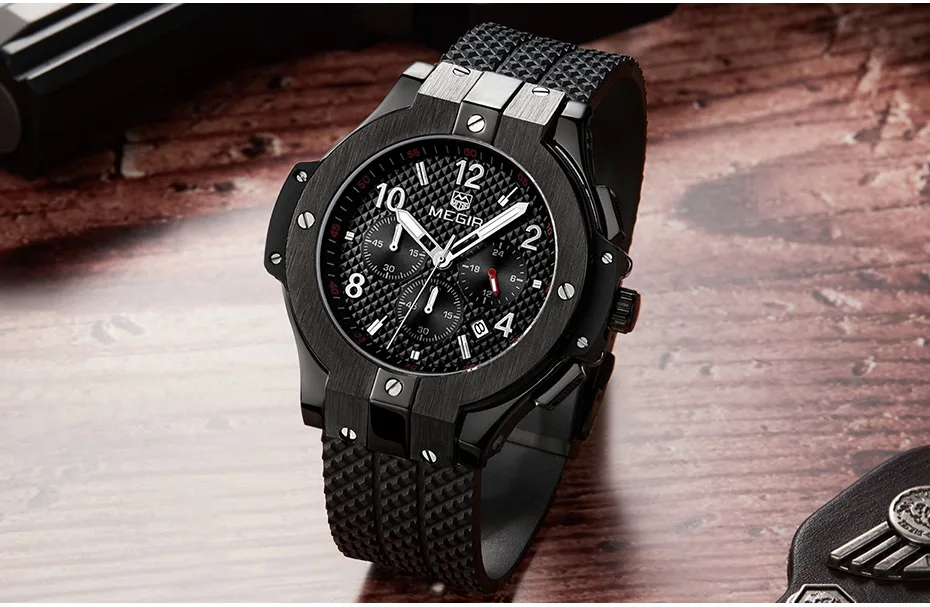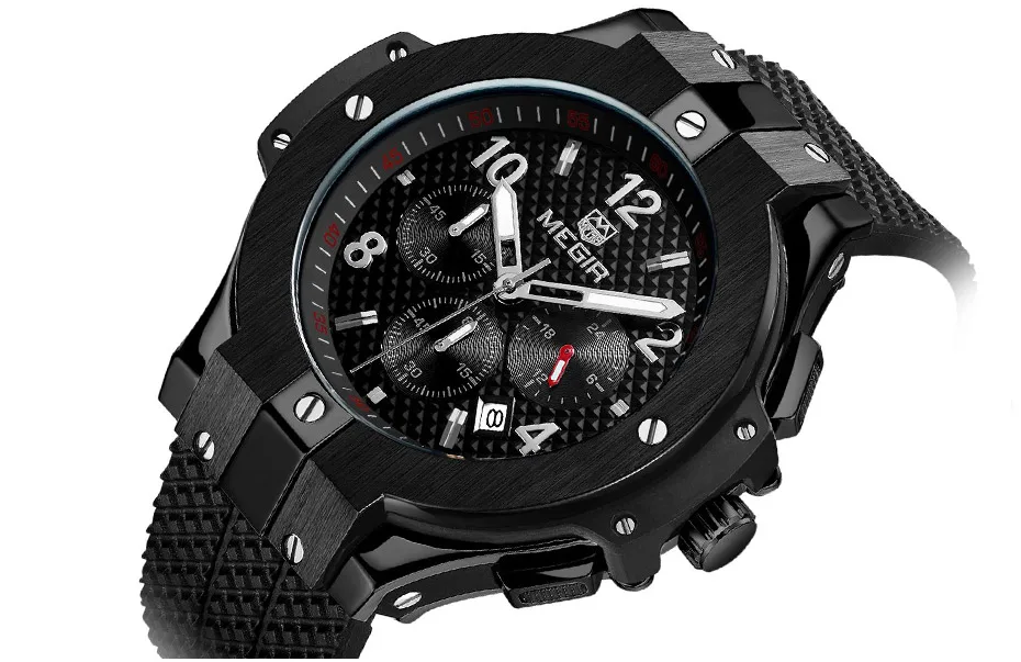 | Army Sports Chronograph Quartz Wrist Watches Men Black Silicone Military Stop Watch Clock Man Relogios Masculino 2050G |